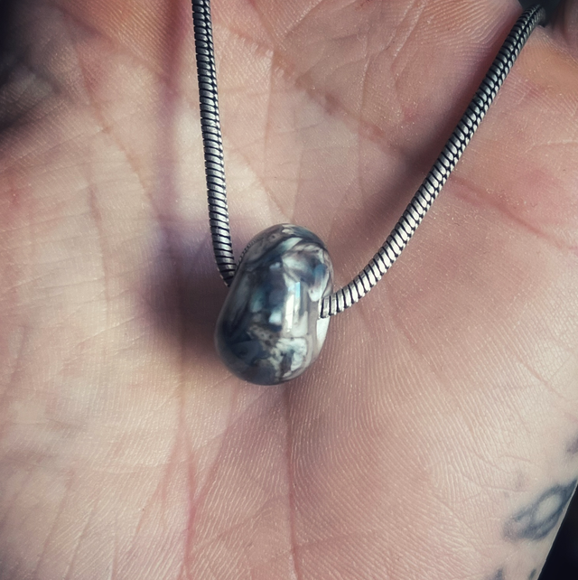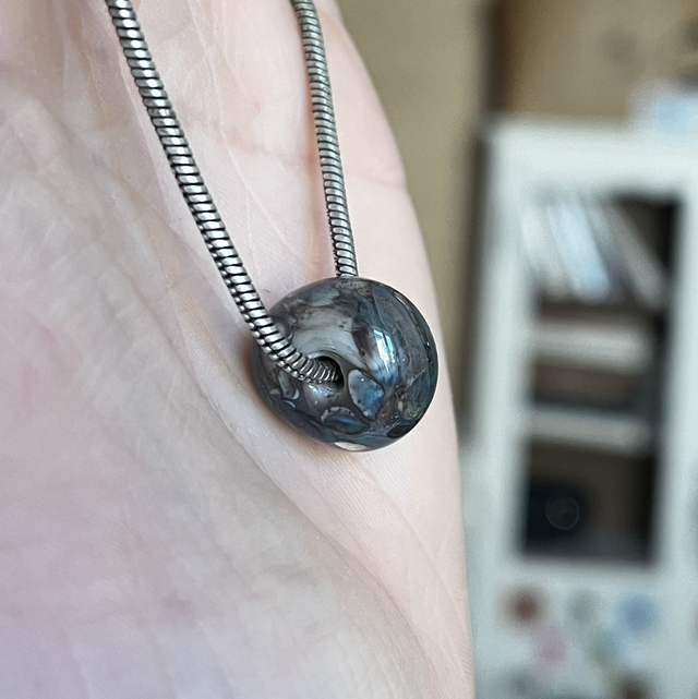 Perle de verre au chalumeau, chaîne en argent NON GARANTI.