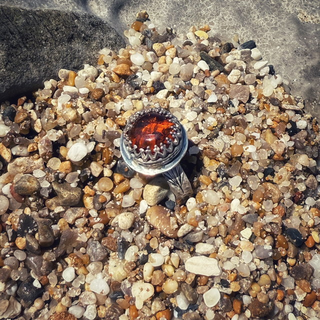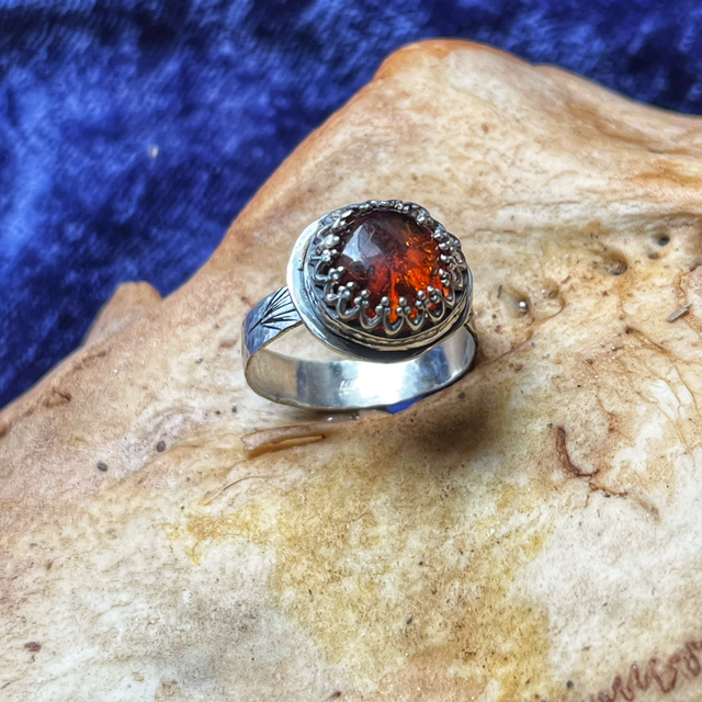 Un fragment de temps cristallisé pour l’éternité, monté sur une bague en argent 925 martelée.
